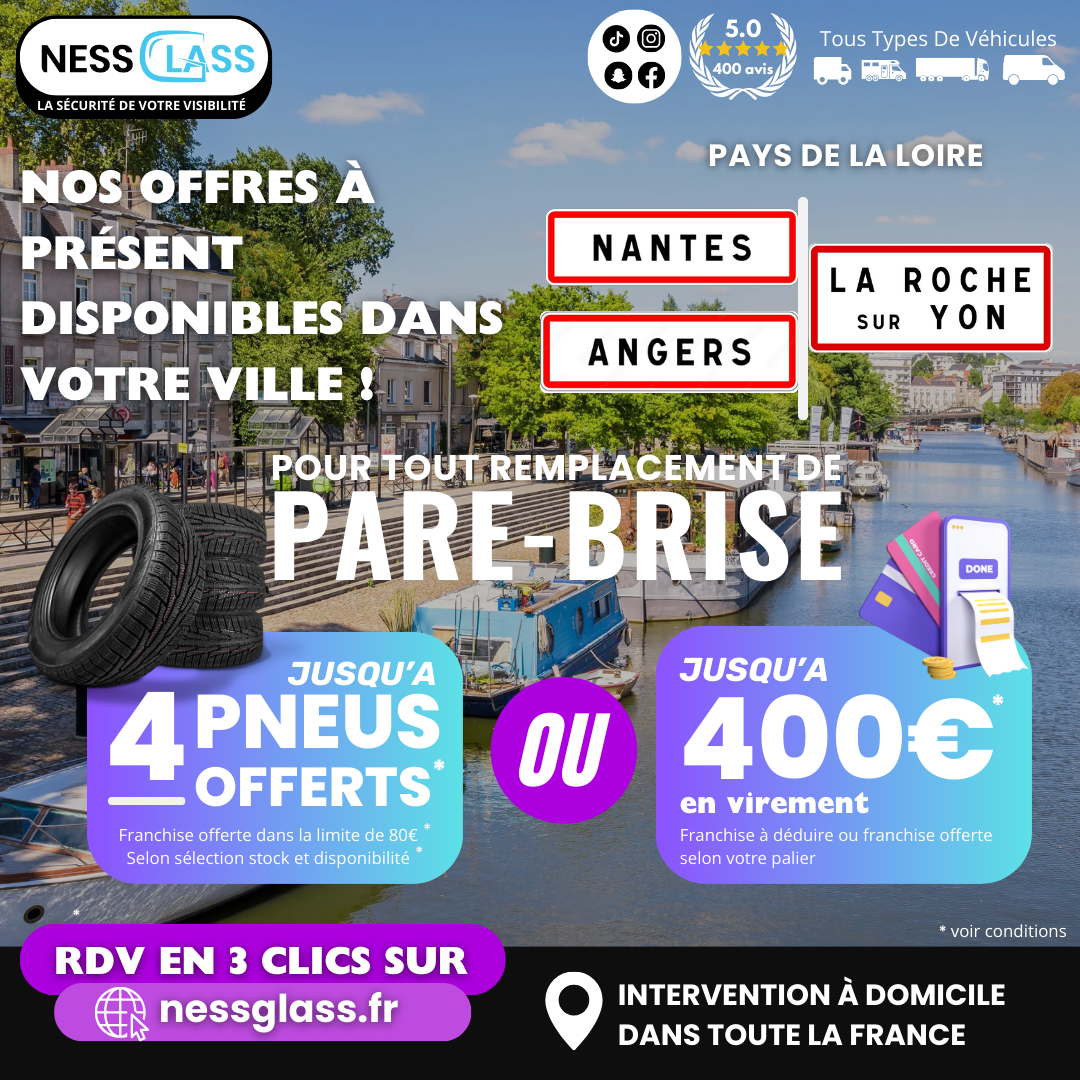 Pour en savoir plus sur nos services de remplacement et de réparation de pare-brise à Angers, n’hésitez pas à visiter notre site web Ness Glass ou à nous contacter via les réseaux sociaux :